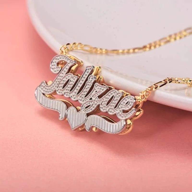 Double Layer Two Tone With Heart Gold Plated Custom 3d Name Necklace Personalized Double Plated Pendant Jewelry Gift For Women Aliexpress
